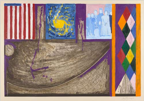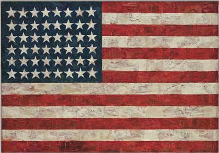 “Flag” (1954-55) intimates similar preoccupations. Art historians and critics have observed how neatly this painting of the American flag collapses representation, abstraction and objecthood into an indissoluble yet paradoxical union. Less often mentioned is what the flag represents: united states, multiplicity and oneness. Johnson is really a perfect fit for this job, I have to admit. Just look at the modern beauty of that first sentence! The painting “intimates similar preoccupations.” You can read that fifty times and still be no better off than before. “Hey, what’s up, Jasper?” “Oh, not much, just intimating a few preoccupations!” And apparently large numbers of important people have observed how neatly this painting collapses representation, abstraction and objecthood into an indissoluble yet paradoxical union. The jiggers, you say! Well, I’ll be. But wait, couldn’t you say that about any painting, if you were whacked enough to want to? Couldn’t you say it about the Mona Lisa, for example? In the Mona Lisa, we have representation, abstraction, and objecthood, all at once. The image is a representation, Leonardo has used abstract elements to create his image, and the painting as a whole is an object. The Mona Lisa is also an indissoluble union, or just as indissoluble as this flag painting: both are indissoluble until you drop them in a vat of turpentine. And Johns flag is paradoxical only to people who are confused by images of real things that look like the real things. So these nincompoops would also find the Mona Lisa to be paradoxical: they might look behind the frame to see if the lady were really there. But Johnson isn’t finished with his philosophy for dunces, his presentation of painting as pons asinorum: he must reiterate that deep assertion about “multiplicity and oneness”, which of course is just our old “fragmentation and wholeness” again. Funny that the painting is an “indissoluble union,” but it is also an example of fragmentation and multiplicity. I guess he means the sort of fragmentation that maintains union: fragmentation that is not fragmented. And more: The beauty of those early works is in how such seemingly impersonal images can convey such plaintive urgency. I’m sorry, could anyone tell me where to look for “plaintive urgency” in the paintings above? How can a still flag have any urgency, plaintive or otherwise? “Hurry up and look at me before I…before you…before we…nope, I’m still a flag.” It has commonly been supposed that Mr. Johns picked motifs that were relatively empty of meaning so that he could focus without distraction on abstract forms and technical processes. Johnson also makes this common supposition. But if Johns is focusing on the forms and processes, where does the urgency come in? Where is the tension? Where is the content? The answer: there isn’t any. The motifs were empty of meaning to begin with, and Johns did not fill them with anything. He did this on purpose, so that the critics would have something to do. That is why they love him. He is a creative non-entity, which allows them to intimate their own personal preoccupations and to write ridiculous sentences full of manufactured paradoxes and invisible idiocies.