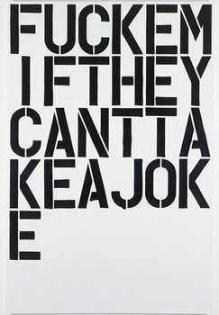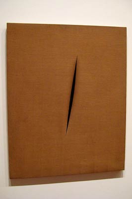 FUCKEMIFTHEYCANTPAINTBUTTRYTOBEFUNNYBUTCANT Thomas Demand, who is soon changing his name to Thomas Nolongerindemand, has a room up for auction, consisting of fake windows and overturned furniture. The estimate is $100,000. The problem for Mr. Demand is that no one wants to create a hellhole that quickly and cheaply. Part of the fun is assembling it over the years from various big auctions where you can rub elbows with other confused mucketymucks. David Geffen might even be there. There might even be some Indian legwrestling [see Ten Biggest Phonies]. The most expensive painting I could find is Kandinsky’s Sketch for Deluge II, estimated at a whopping $25 million. Lucio Fontana’s notorious slashed canvas is the catalog as well, for an estimate of $300,000. Tom Wesselmann is an instructive find, especially for me. He is famous for his female nudes. Up for auction next month is his Great American Nude, a plastic figurine that will set you back an estimated $70,000 or so. Or you can get a 4 x 9 inch painting by Wesselmann for only $25,000. The next step up in price from Wesselmann is David Park, who has a 1957 painting in the November catalog entitled Male Nudes. This 20 x 28 inch painting is estimated at $400,000. It is an amateurish sketch that likely took about 15 minutes. It was painted with one large brush. The figures have no definition and no expression. The painting is devoid of emotion. Its only redeeming characteristic is that it is a figurative work painted during the time of abstraction. It really is slightly more interesting than a Hoffmann or a Rothko, if only because it reminds you of naked people. Naked people are like pears: they portend the satisfaction of a hunger. But Park’s painting is only an atom of satisfaction. If that is still too much satisfaction for your libido, you can try Alex Katz. His painting, called Roger and Sophie, is estimated at $100,000. As in most auction catalogs in the past forty years, the most expensive jokes in this Sotheby’s catalog are Warhol lots. Warhol was allowed to be figurative because he treats the figure like Duchamp treated a urinal. It is an empty symbol, or a symbol of emptiness. As such it also stands for Theory. Warhol is more famous than Katz or Wesselmann because he more successfully drained his art of all art. His gestures are emptier, and his jokes thereby become broader. He is not just undercutting a few grandmothers and basement painters, he is undercutting all of history. In that way he reached a position of maximum usefulness to art critics. Jenny Saville, who veers furthest from the avant garde’s traditional concerns, still manages to make the inner sanctum by adopting its politics. She is represented at Sotheby’s by Factor 8 (another one of her fat women), Francis Bacon is a precursor of both Saville and Richter. To Saville he suggested political content, to Richter he suggested purposely bad painting. Only the two together can take you as far as Bacon went. The estimate for Pope and Chimp is $4 million. And finally, this Rothko sold for over $17,000,000. Did I see anything I liked? you may ask. Only one thing in the contemporary section: a small oil by Neil Tait entitled Vagrant. It is estimated at $10,000, which seems about right. It is well painted, though only a sketch, and has a strong mood. It lacks just enough finish to be considered modern, I suppose, although it may have made it into this section based only on its date. I don’t know how Sotheby’s creates its categories. Nor do I know anything more about Neil Tait. When I am scolded for my presumption in painting nudes without any modern deflection or political backup, when I am scolded for my presumption in attacking the rich and famous and powerful people of the avant garde, I have to laugh. Being scolded by the avant garde for being presumptuous, for attacking people, is so incredibly rich. When they add the epithet “tasteless” it all becomes a divine comedy. It makes me want to stencil this cliché on my canvas: THEYCANDISHITOUTBUTTHEYCANTTAKEIT. The contradiction: the conventions of traditional art must be uprooted, must be deconstructed and critiqued and questioned at every point; but the postulates of Modernism are a priori truths, settled facts, no longer up for discussion. Realist works should be picked apart with a fine-tooth comb; avant works should be taken on faith and never closely examined. Blindness to the defects of classical art is a pathology; blindness to the defects of avant garde is a sign of a big heart. Criticizing realists is a fun and profitable game; criticizing Modernism is dangerous and anti-social. Being passionate about tolerance or equal rights is up-to-date and cool; being passionate about beauty or harmony or subtlety is passé and geeky. So you can see that Modernism is no longer a Theory. It is a religion, complete with its own dogma and indoctrinations. As such, it is self-perpetuating: it no longer requires proof or argument. Its success is proof of its truth. Supporters say, could something completely without value persist for an entire century, mean so much to so many people? Support such a lucrative market? Of course it could. History is full of easy examples. Hundreds of thousands of people were jailed and murdered over the difference between transubstantiation and consubstantiation, and other doctrinal subtleties. The catholic church filled its coffers for centuries with money from the sale of indulgences and fake talismans. And so on and on. People have always believed things that aren’t true, for little or no reason and with little or no pressure. And they preferred the delusions. The more preposterous the belief, the more it was a sign of great faith. Credo quia absurdum: I believe it because it is absurd. That is why Sotheby’s can get $4 million for a Warhol drawing of Where’s Your Rupture? Only someone who sits in the first pew could get that excited over nothing. Anyone can get excited abou