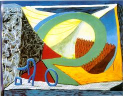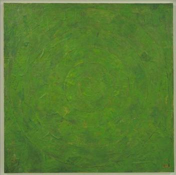 return to homepage The Cardboard Dragon by Miles Mathis On those days when my self confidence is ebbing just a wee bit, when my hair stands awry, when my mustache won’t curl properly, when my arms begin to burn from swimming so long upstream, when my long list of enemies begins to look overwhelming—if only due to the volume of paper it’s written on—I find that a good pick-me-up is a little trip down to Sothebys.com to see what my competition is up to. At one time in history such a trip, or its equivalent, would have been counterproductive. Imagine if you will a youngish painter in the Renaissance signing on to Medici.com to see what the competition was up to. He probably would have hung his head and drunk himself to sleep. A perusal of the homepages of Michelangelo and Leonardo and Raphael could hardly have sent him scrambling for the brushes, bristling with self-assurance. Now it is different. Yes, the words of the enemy, chanted by a thousand mouths, may seem at times a great wall. The odds appear preposterous. Goliath is too big. The dragon too long and scaly. The bridge too narrow. But the works do not support the wall of words: it dissipates like a great wind. Goliath has a magnetic head, and the rock in my sling is of iron. The dragon is a cardboard monster and the bridge likes my stride. The youngish artist is left with the realization that the opposition is only a field of strawmen above a crop of pumpkin-carriages. An army of ghosts, or of skeletons—like in some old movie with Jason or Sinbad. One real man with one real sword can mow them down like corn. One real work will trump them all, like a spade ace on a hundred decks of club deuces. As it happens, Sotheby’s is having a great auction of pumpkin-carriages, of club deuces, of magnetic Goliath heads and cardboard dragons, and it may be as bracing for you as it was for me to see which is which. After all, when we are criticized by the avant garde, for whatever reason, these cardboard dragons are what they have in mind as the superior alternative. This is the famous and expensive, and therefore important, work. Jasper Johns is represented by Green Target, a 9-inch square painting estimated at $4 million. Jeff Koons is also on hand at the Sotheby’s auction with some ugly glass flowers. For those who want less subtlety in the pit, Christopher Wool offers