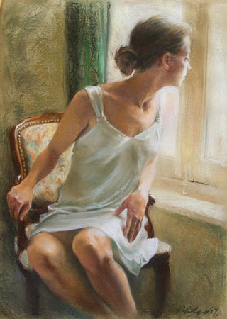 Waiting, I simply asked my model to look out the window. I did not create the pose; I discovered