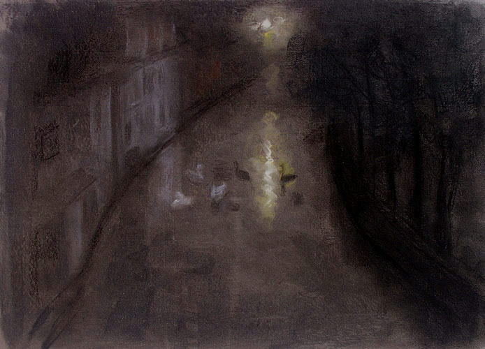Swans at Night, Bruges